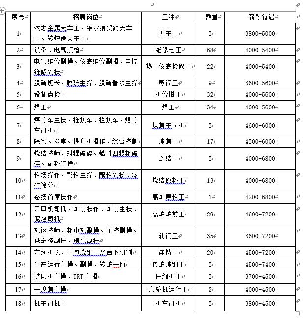 酒鋼集團(tuán)榆中鋼鐵有限責(zé)任公司現(xiàn)因生產(chǎn)需要,現(xiàn)面向社會公開招聘300名崗位操作人員,現(xiàn)將有關(guān)事宜通知如下: