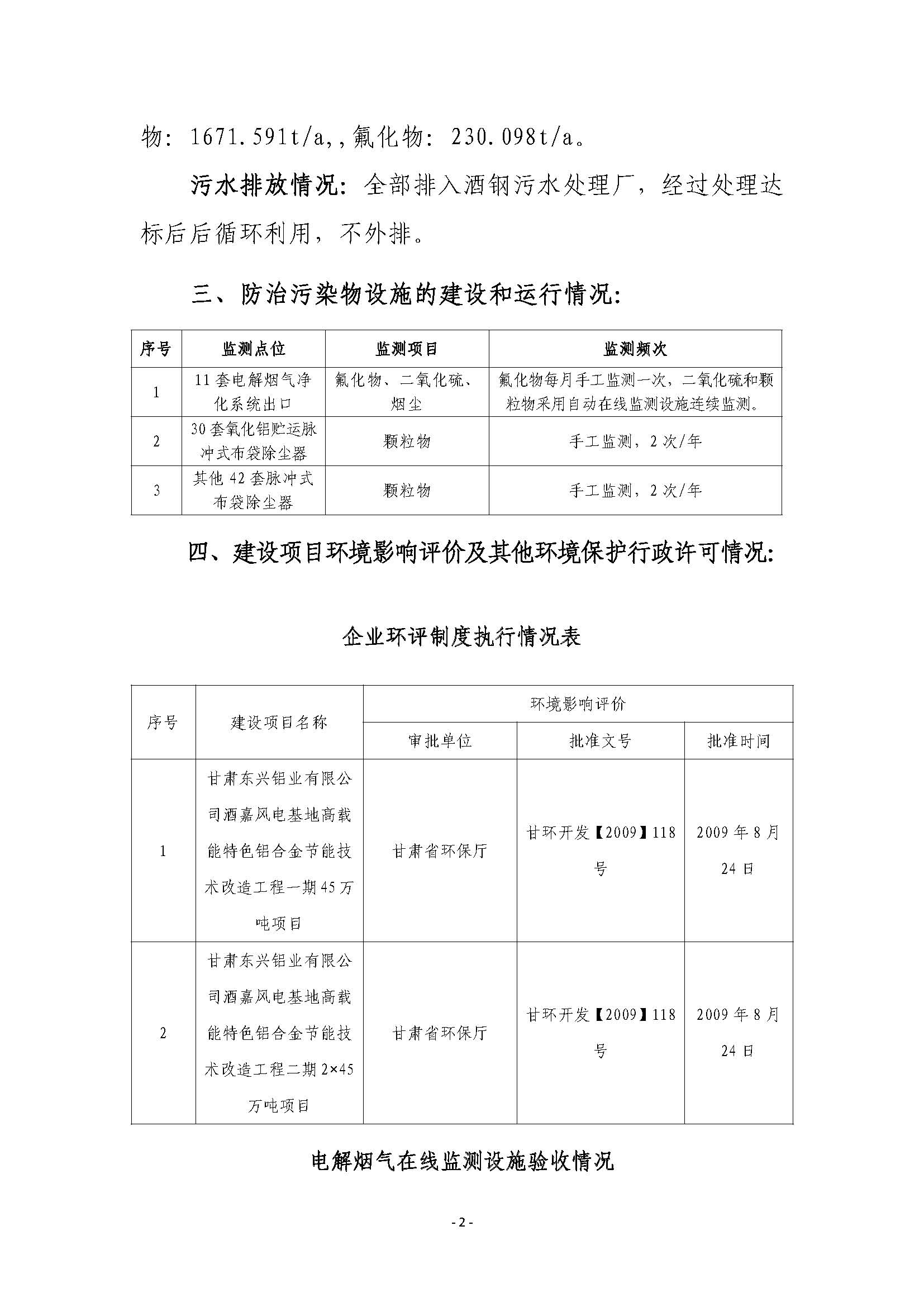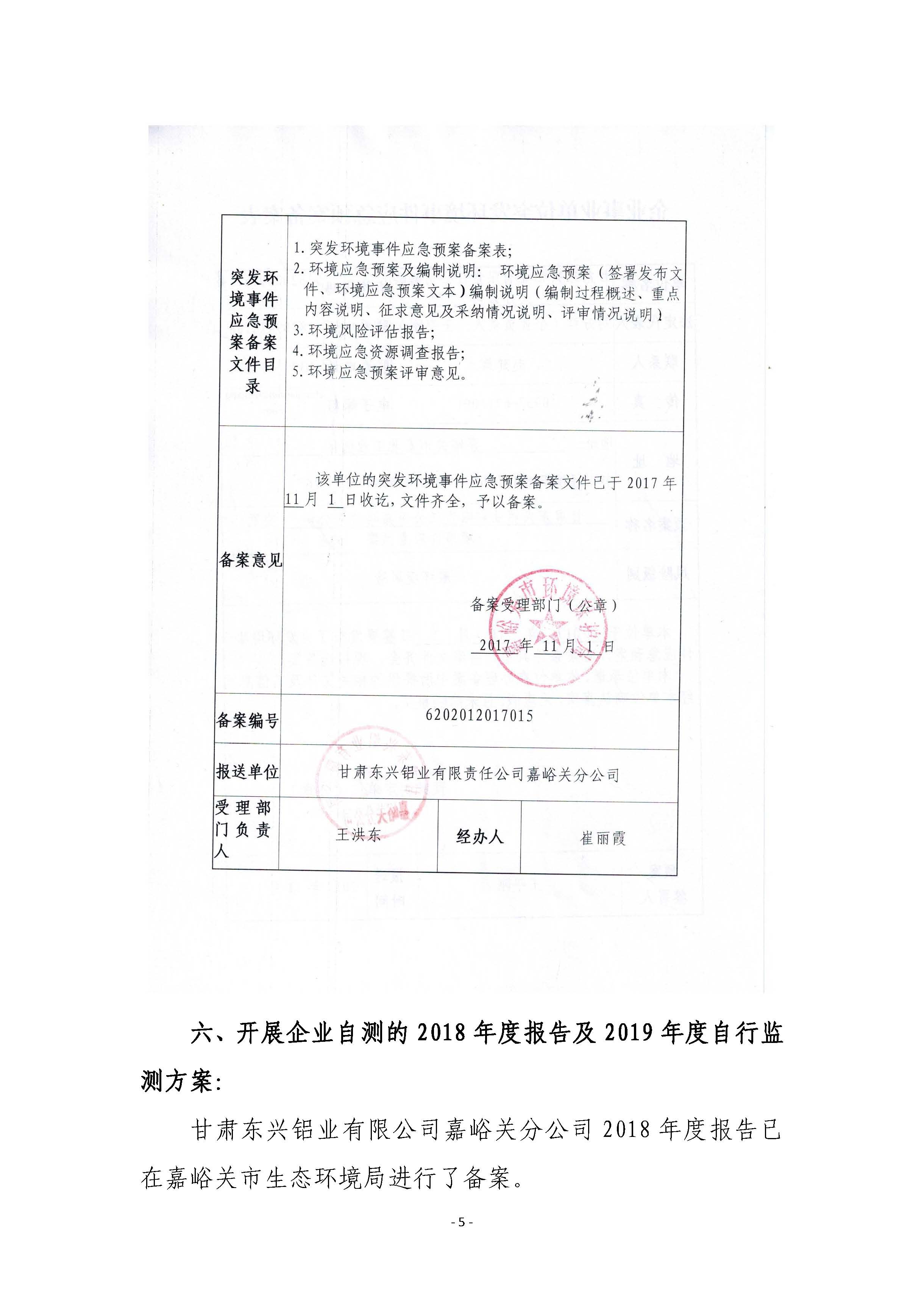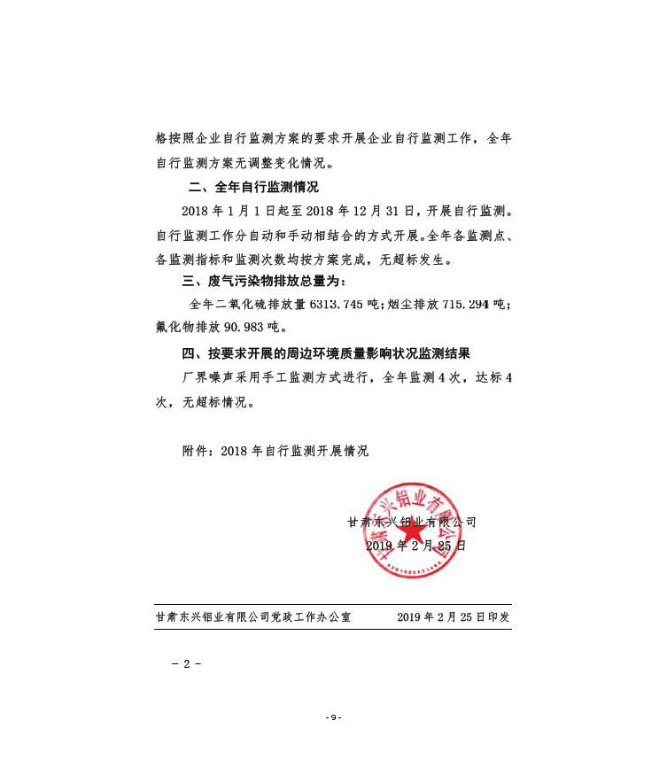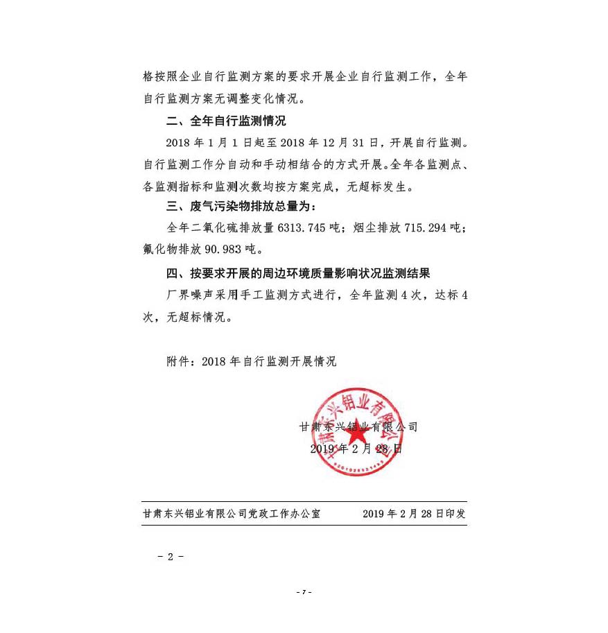 甘肅東興鋁業(yè)有限公司嘉峪關(guān)分公司2019年度環(huán)境信息公開