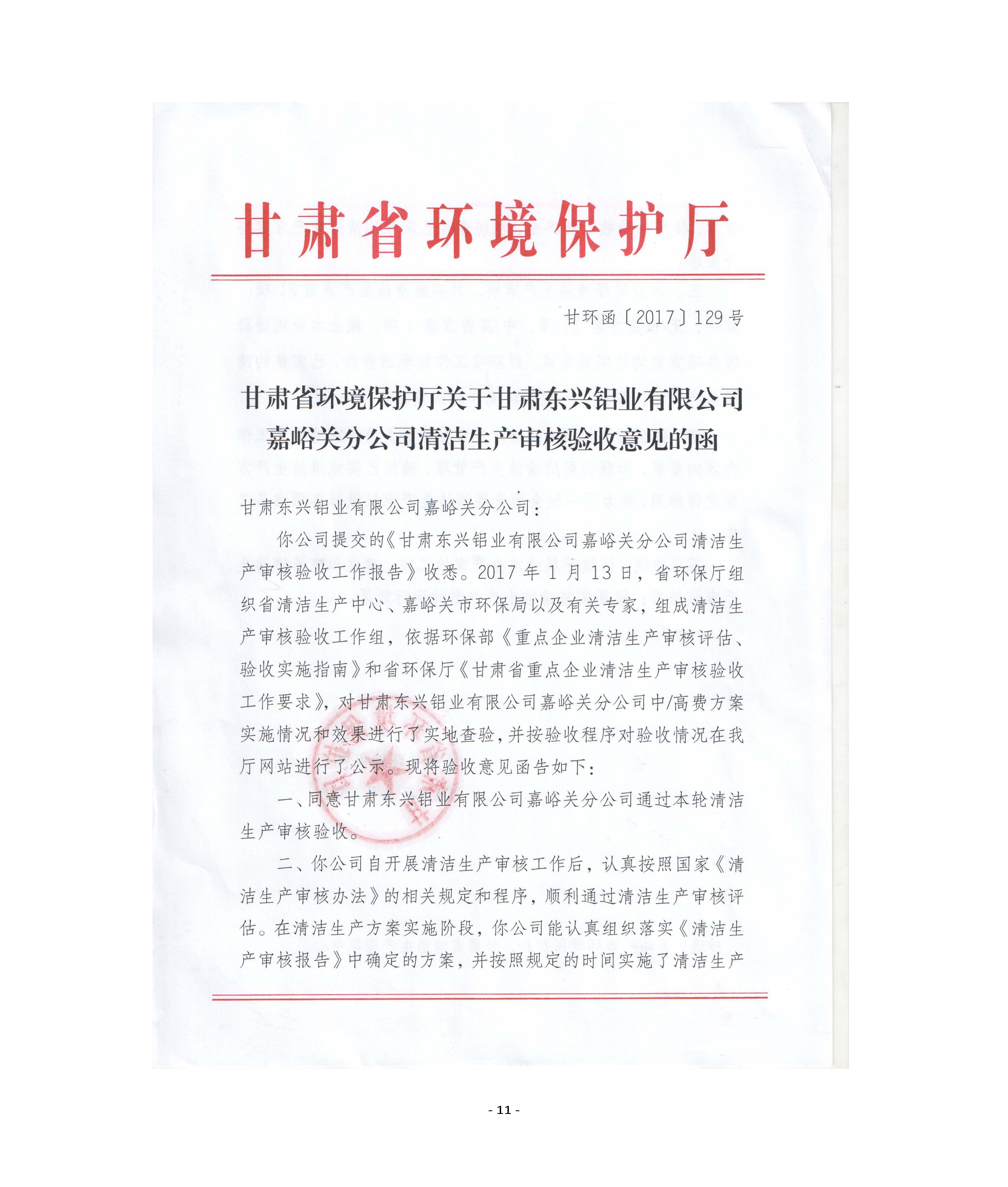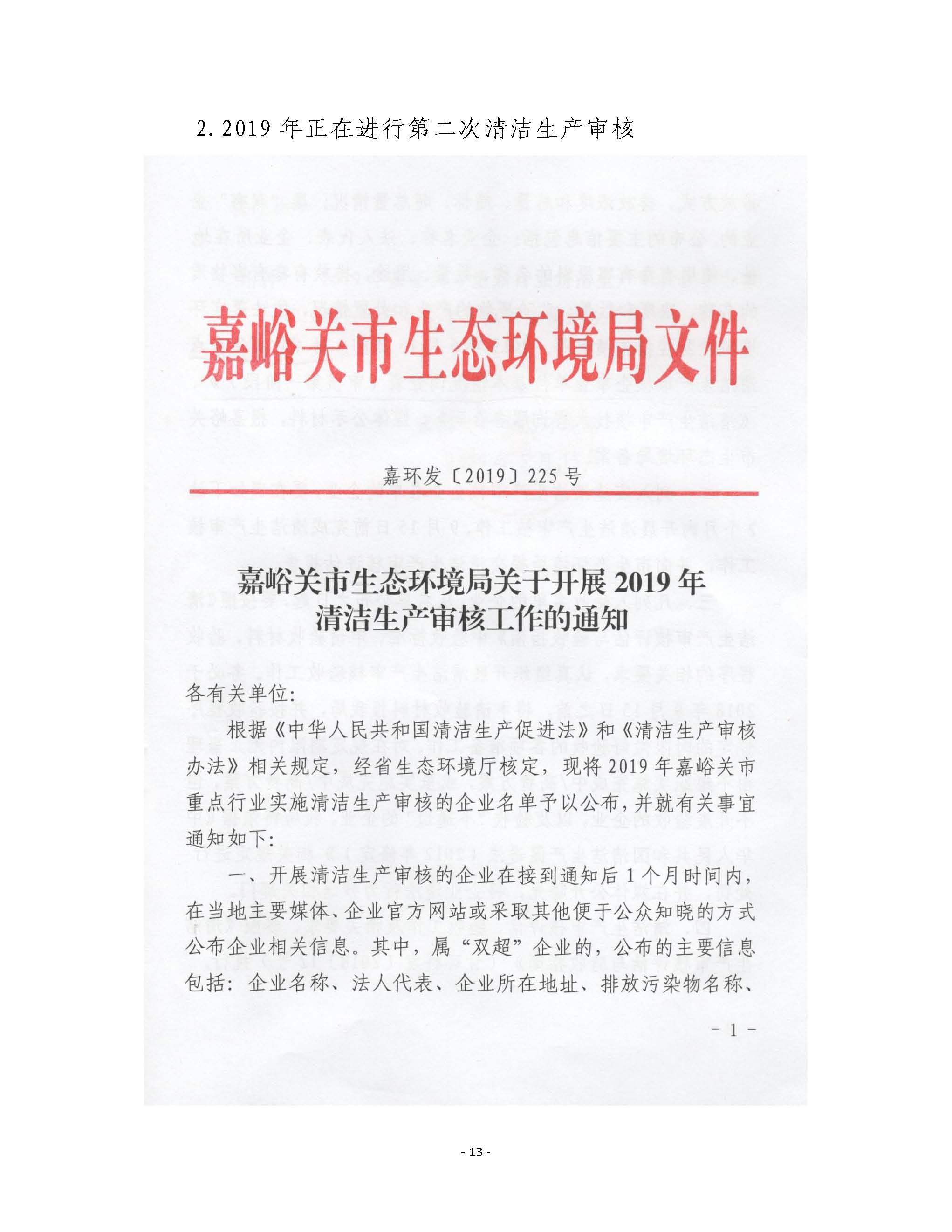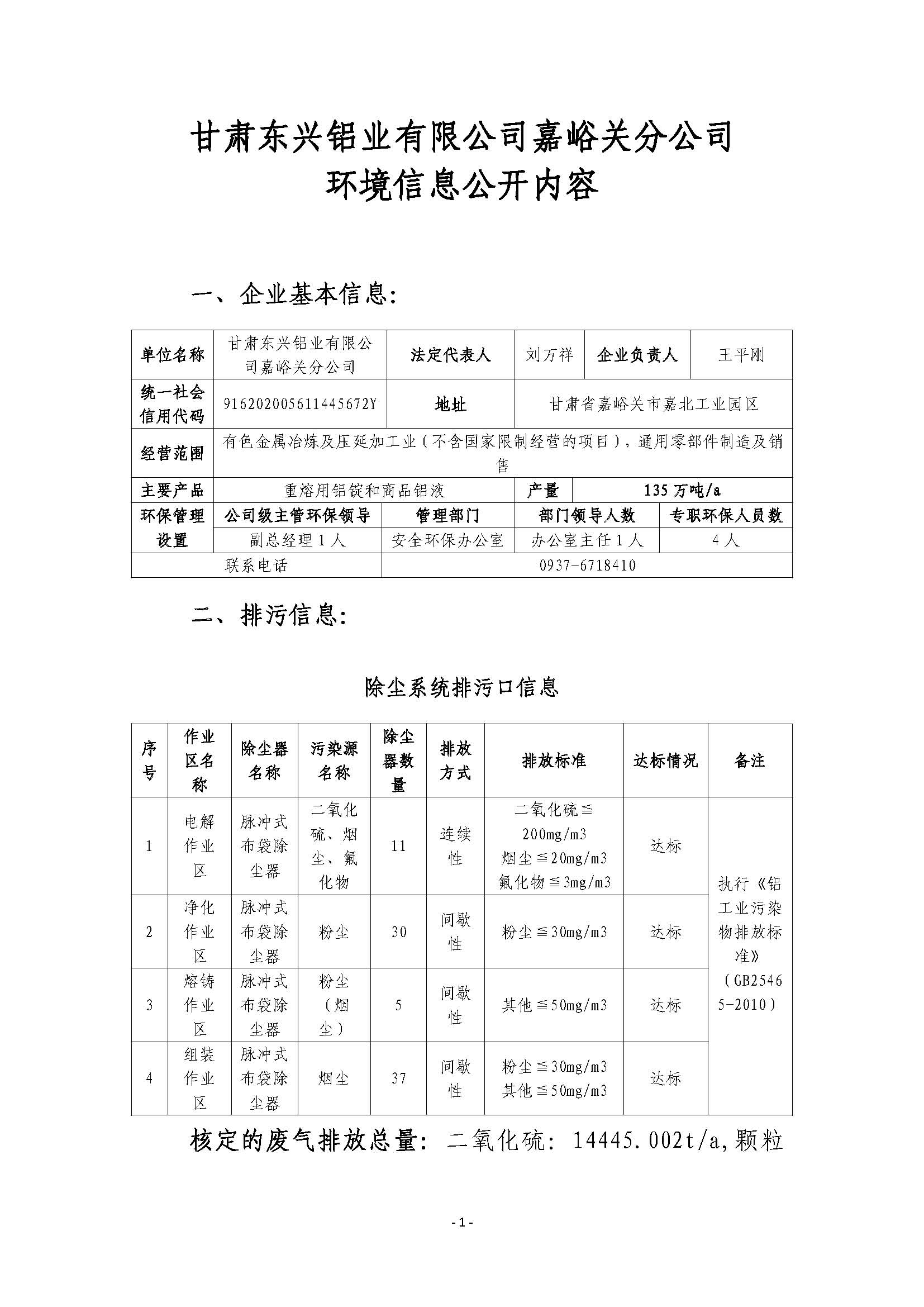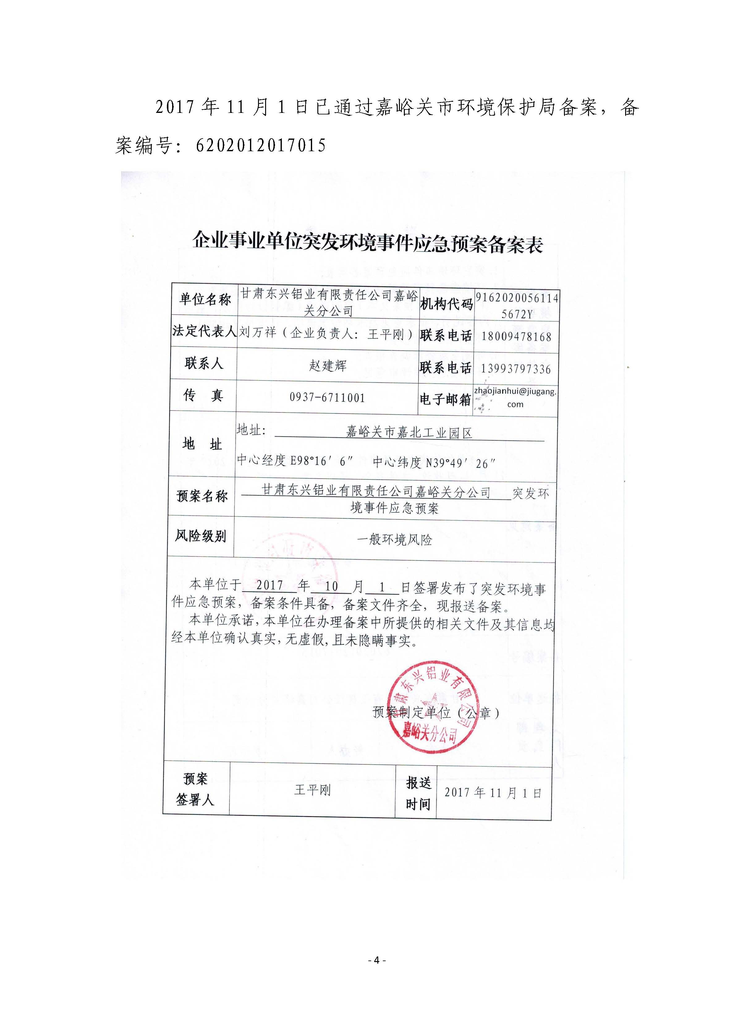 甘肅東興鋁業(yè)有限公司嘉峪關(guān)分公司2019年度環(huán)境信息公開