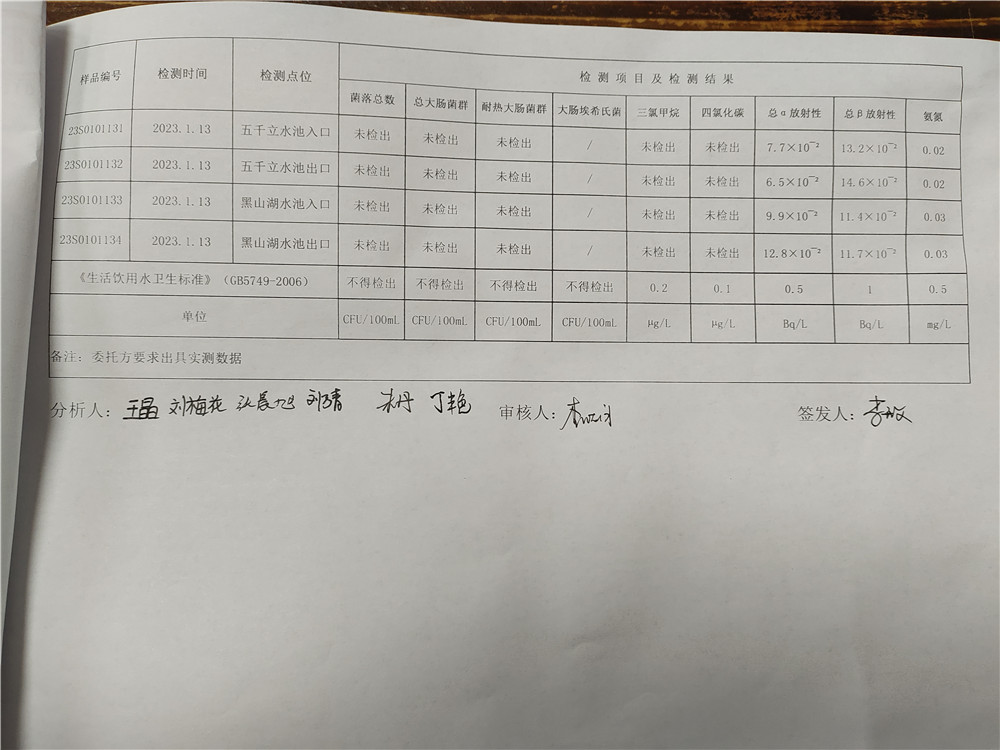 甘肅潤(rùn)源環(huán)境資源科技有限公司水源地水質(zhì)2023年第一季度公示