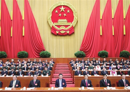 習(xí)近平、李克強(qiáng)、俞正聲、劉云山、王岐山、張高麗和大會(huì)主席團(tuán)成員在主席臺(tái)就座。